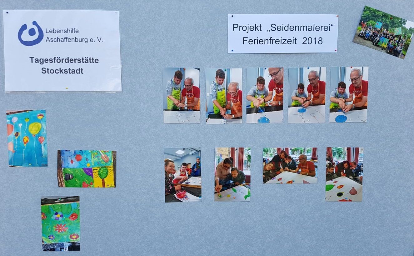 Mitarbeiterinnen und Mitarbeiter der Tagesförderstätte aus Stockstadt waren auch anwensend um ihre Arbeit vorzustellen. Im Rahmen des Fachpraktikums der Ausbildung haben die Schülerinnen und Schüler die Möglichkeit bei uns ihr theoretisches Wissen anzuwenden. Sie üben das fachliche und methodische Vorgehen bei der Begleitung und Betreuung von Menschen mit Behinderung. Grundlage dafür sind das Erkennen von Beziehungsprozessen und deren reflektierte und differenzierte Beobachtung.
